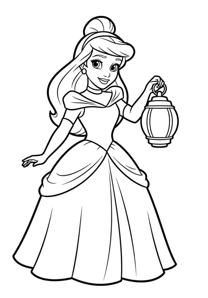 Princess Holding a Glowing Lantern Coloring Page
