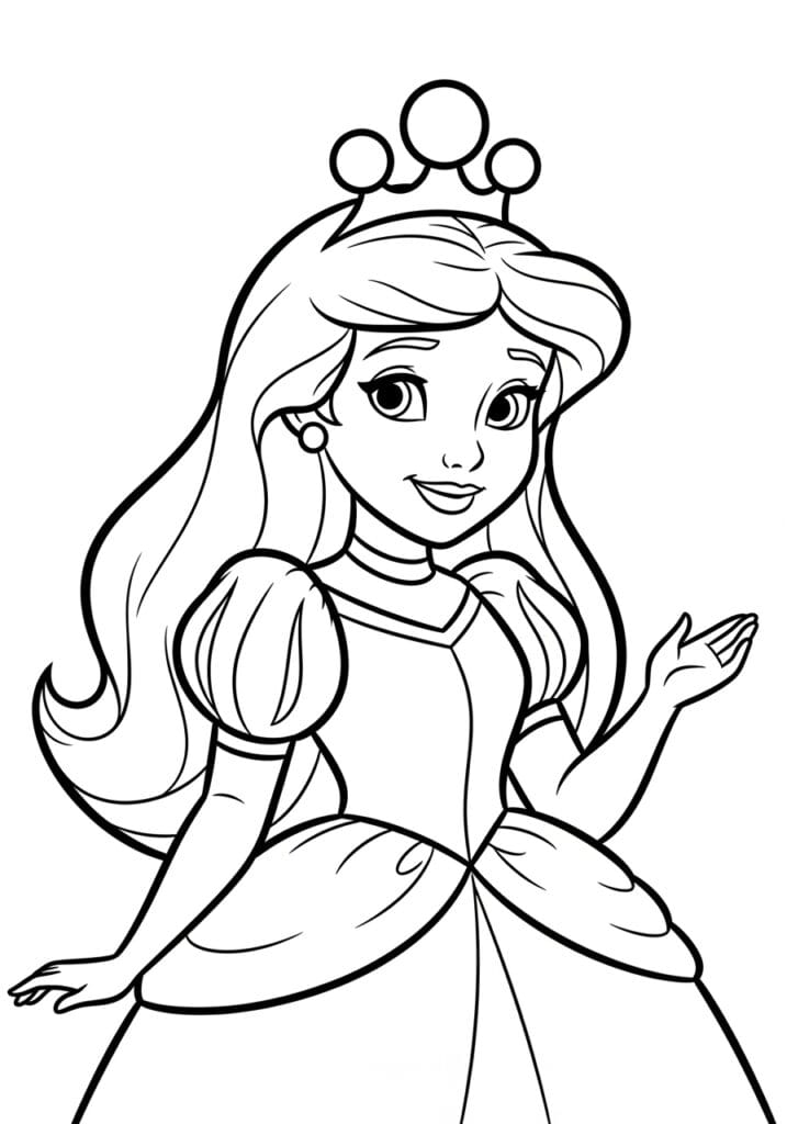 Princess Wearing a Tiara and Elegant Ball Gown Coloring Page