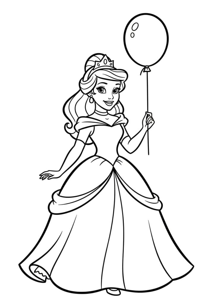 Princess Holding a Balloon at a Royal Celebration Coloring Page