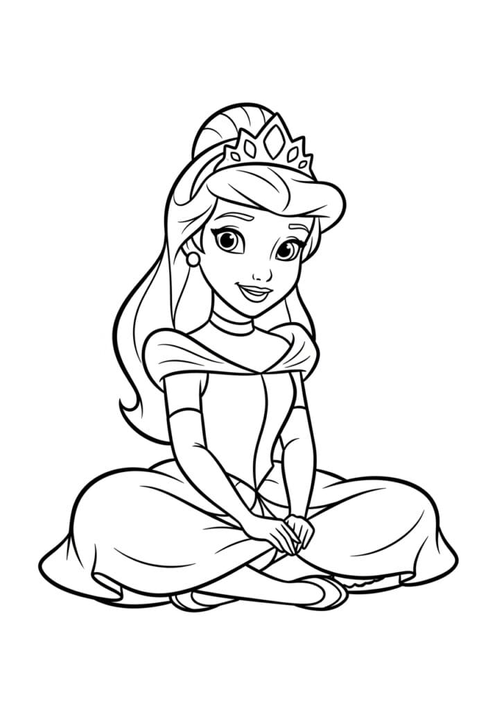 Princess Sitting Cross-Legged on the Floor Coloring Page