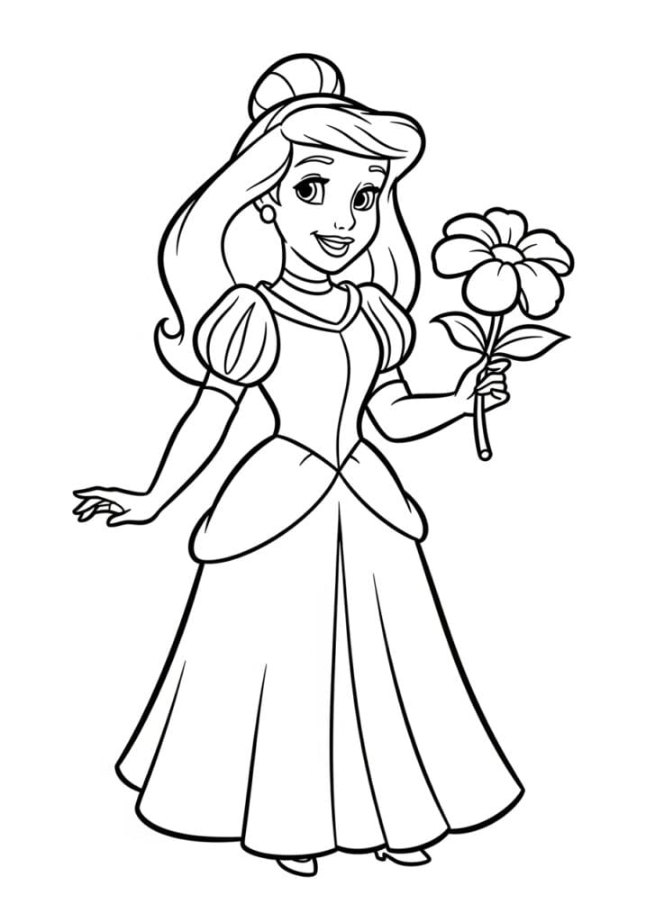 Princess Holding a Beautiful Flower Coloring Page