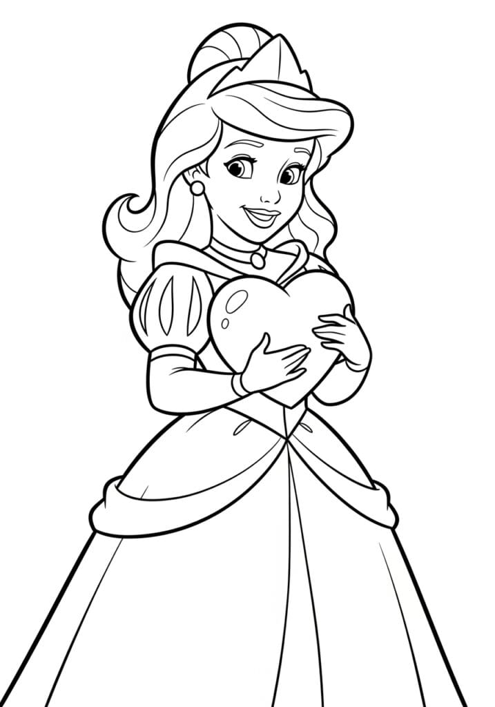 Princess Hugging a Big Heart Coloring Page