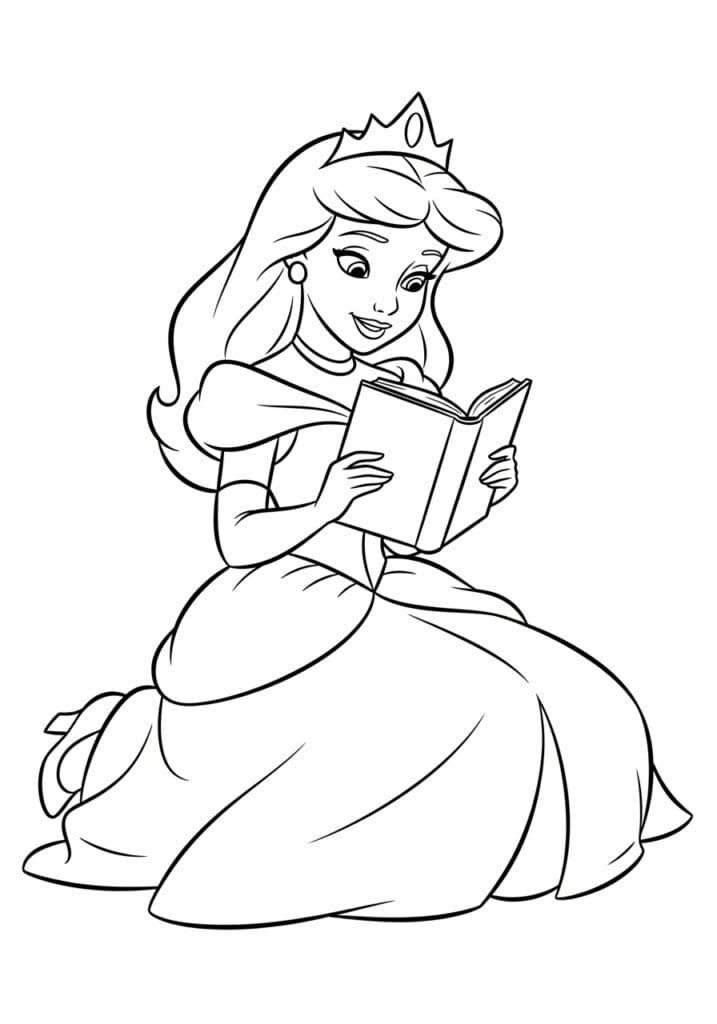 Princess Sitting Down and Reading a Book Coloring Page