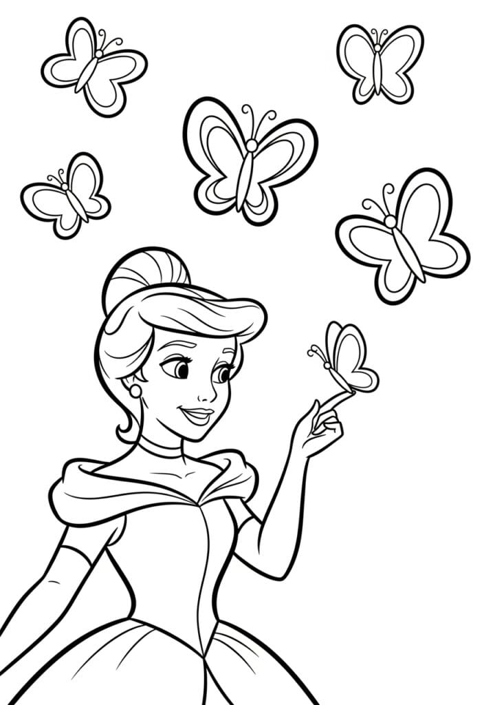 Princess with Butterflies Flying All Around Her Coloring Page