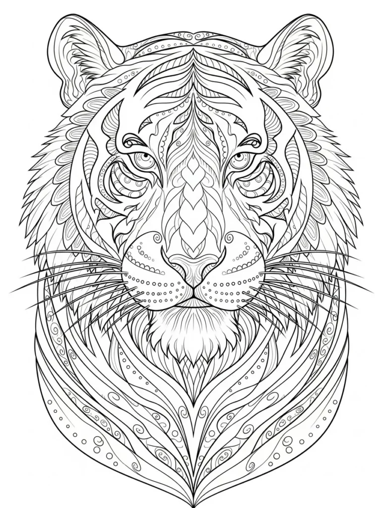 Oh my goodness, this tiger is royalty disguised as a coloring page and I am ready to treat it as such. I feel like this design begs for rich vibrant jewel tones and perhaps metallic accents on the forehead patterns to really give it that majestic sparkle. It is engaging because it offers a blend of realistic animal focus and abstract decorative elements which means I can let my imagination run wild with color choices for the abstract sections. For me spending time filling in these complex, flowing lines is the ultimate form of mindful escape a total creative reset.