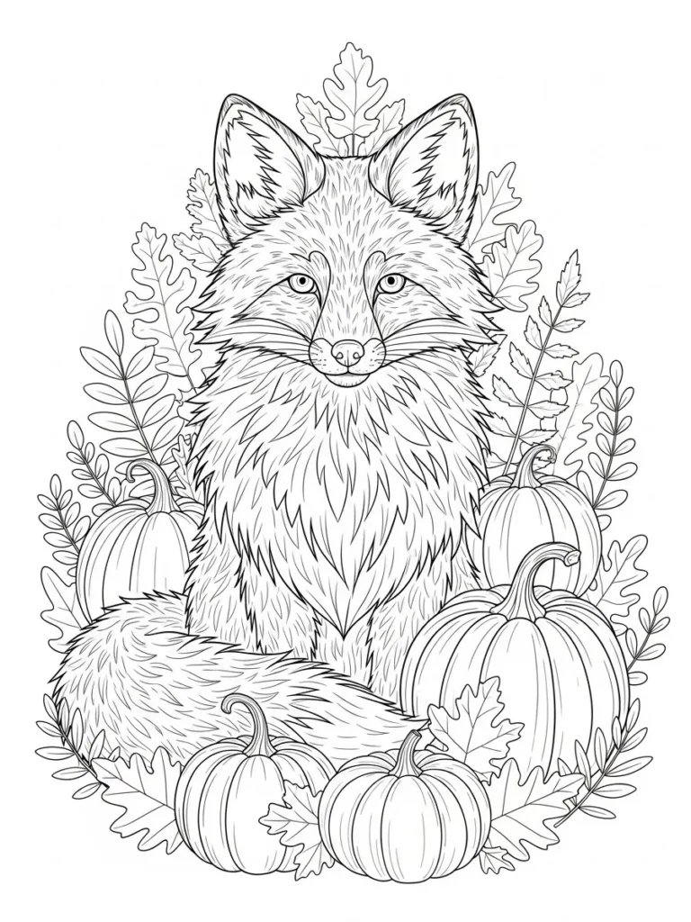 I think this page is incredibly fun and relaxing because it combines my two favorite things a cute woodland creature and harvest decor. Getting to color that amazing fox fur is such a treat; I’m planning on using soft, layered shades of orange, rust, and cream to make it look super realistic and soft to the touch. Then I can use those classic deep reds and browns for the leaves and pumpkins to really make the fox stand out. Focusing on the details of the fur texture is a great way to slow down and really enjoy the coloring process. This one feels both charmingly cute and perfectly seasonal for our warm harvest theme.