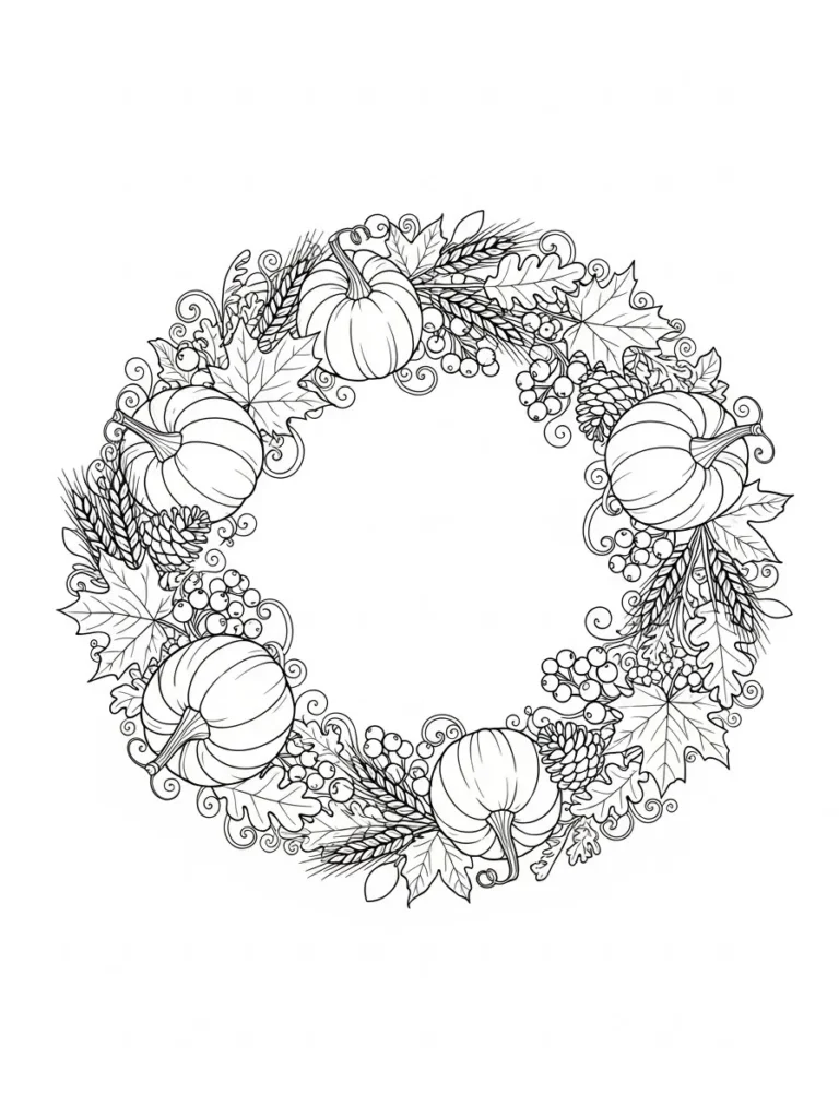 I think this page is wonderfully relaxing because the circular, repeating nature of the mandala style helps guide my hand and focus my mind. It’s engaging because I have so many different textures to color—the smooth pumpkins, the delicate berries, the rough wheat, and the leafy swirls—which keeps things visually interesting. I plan on using that classic warm fall palette, making the pumpkins vibrant oranges, the berries deep jewel tones, and giving the leaves a beautiful gradient of reds and golds. Coloring this wreath feels like creating a beautiful, tangible symbol of gratitude and seasonal beauty that I can look at and feel instantly cozy.