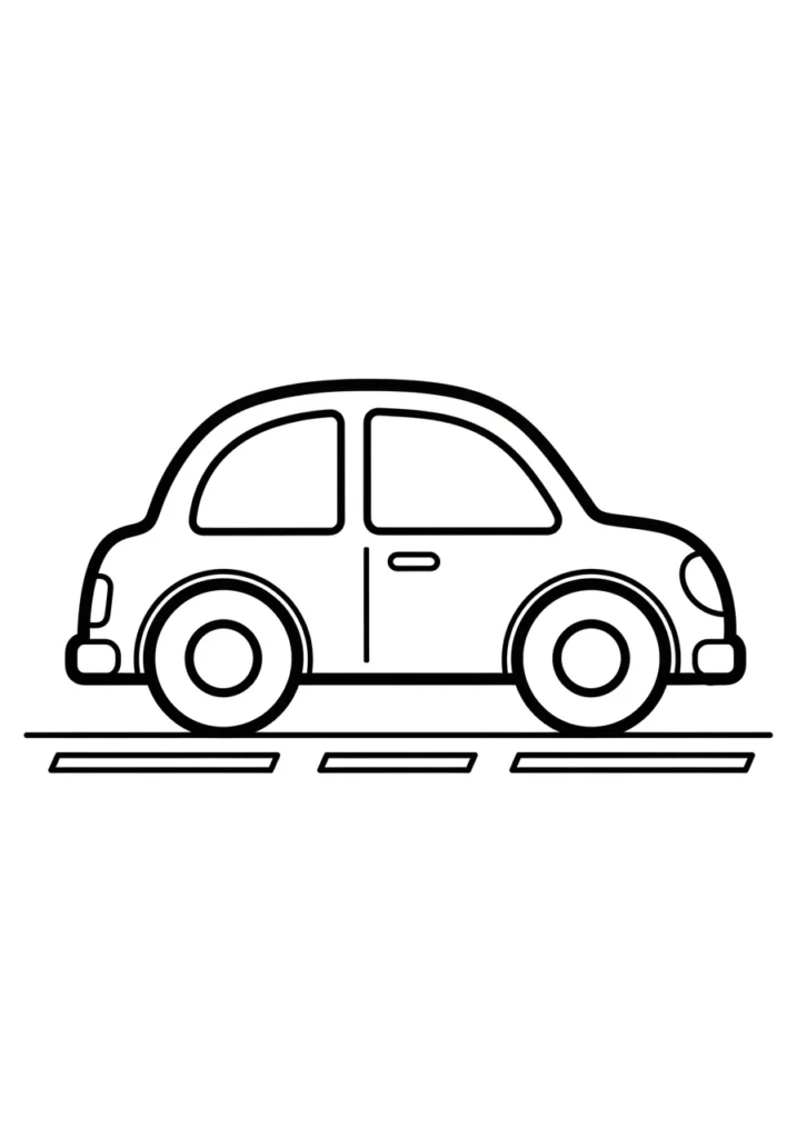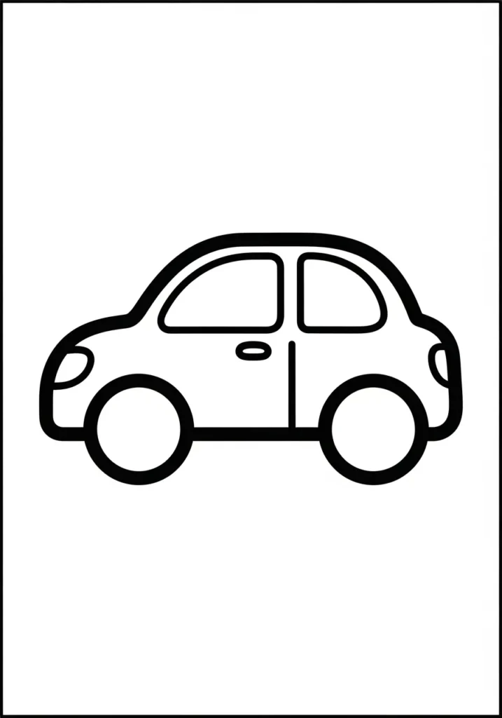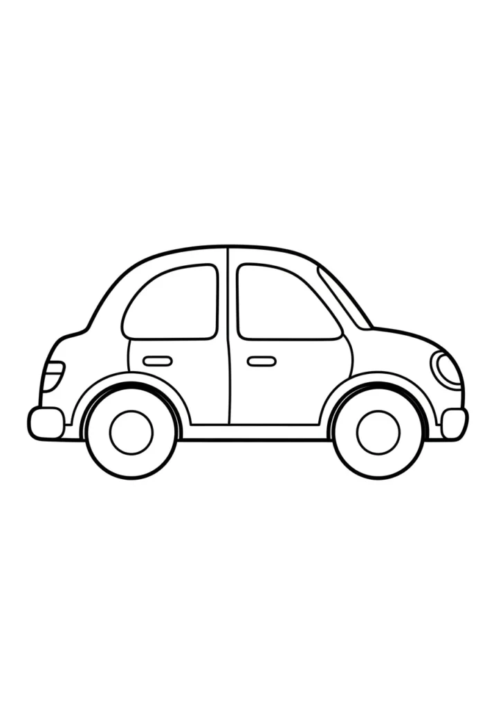 This design features a very minimal side view car with extra bold outlines and large, open shapes. The wheels, doors, and windows are clearly defined with no small details at all. Everything feels sturdy and simple, which makes it ideal for beginners or anyone who wants an easy coloring page.