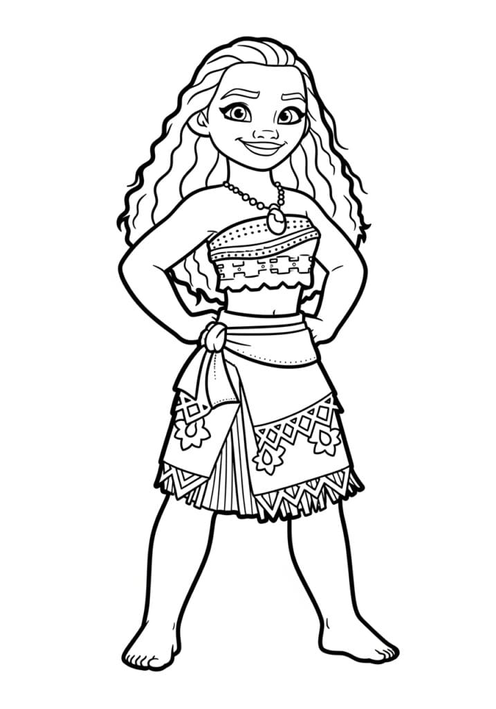 Moana Standing Strong With Her Island Outfit Coloring Page