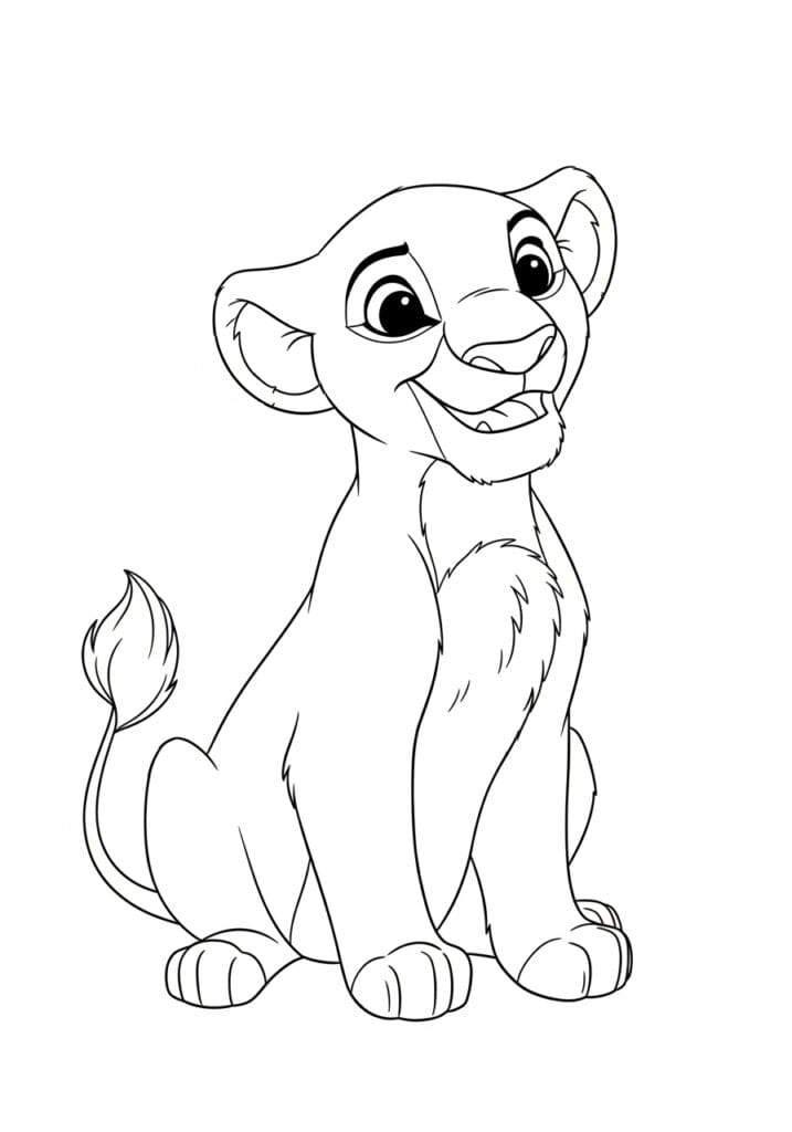 Baby Simba Sitting and Smiling Coloring Page