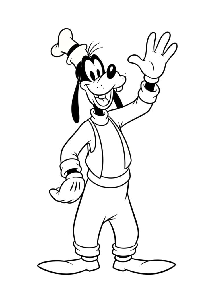 Goofy Waving With His Biggest Smile Coloring Page