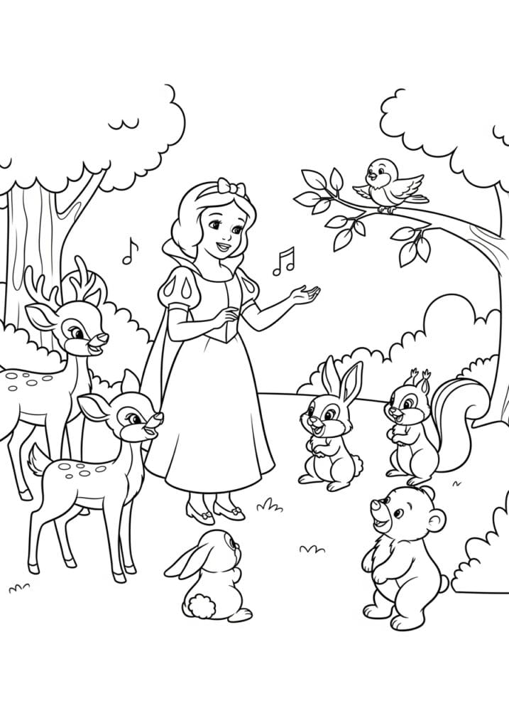 Snow White Singing With Her Forest Animal Friends Coloring Page