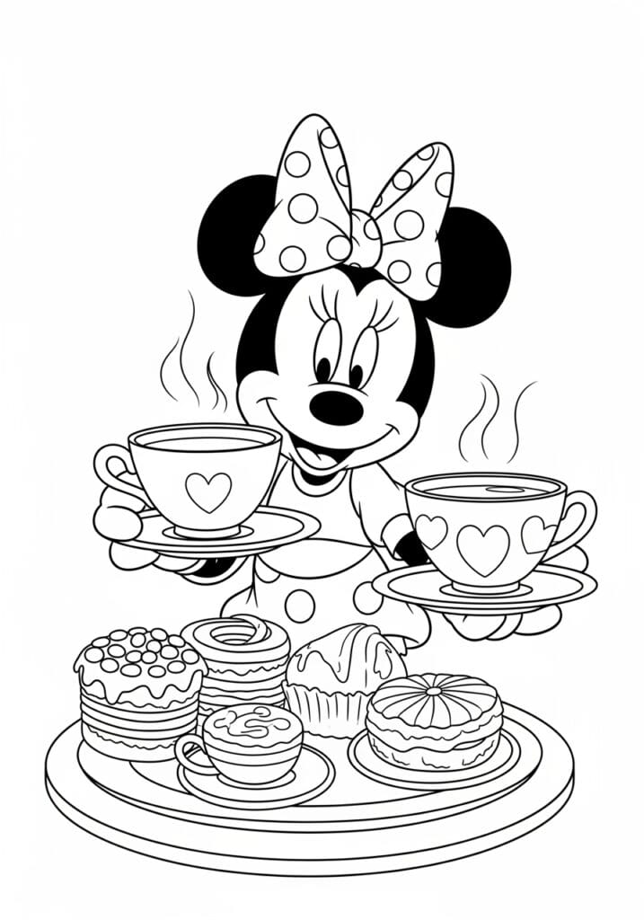 Minnie Mouse Hosting a Cozy Tea Party Coloring Page