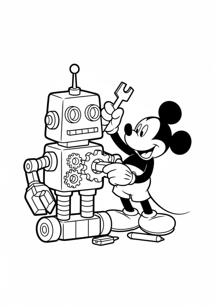 Mickey Mouse Building His Very Own Robot Coloring Page
