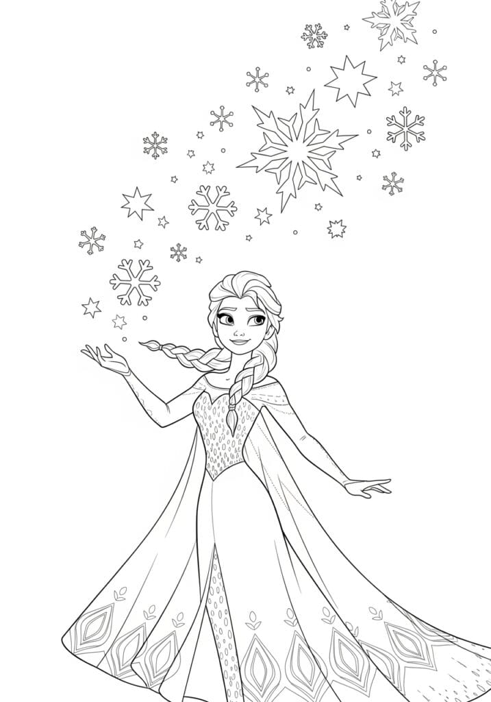 Elsa Conjuring a Swirl of Magical Snowflakes Coloring Page