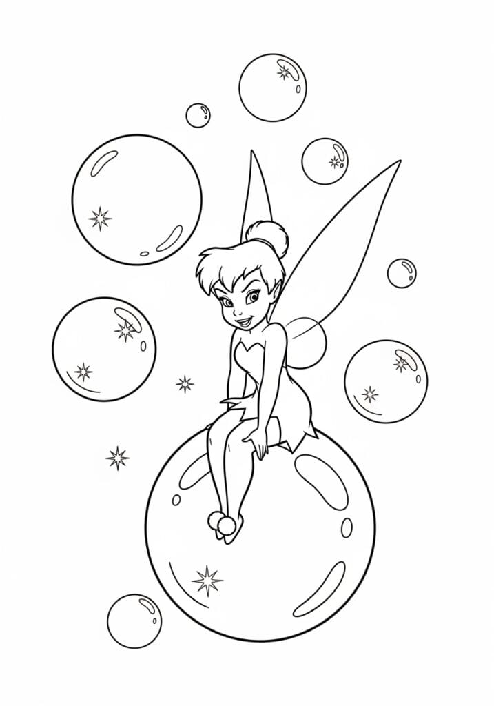 Tinker Bell Sitting on a Magic Bubble Coloring Page