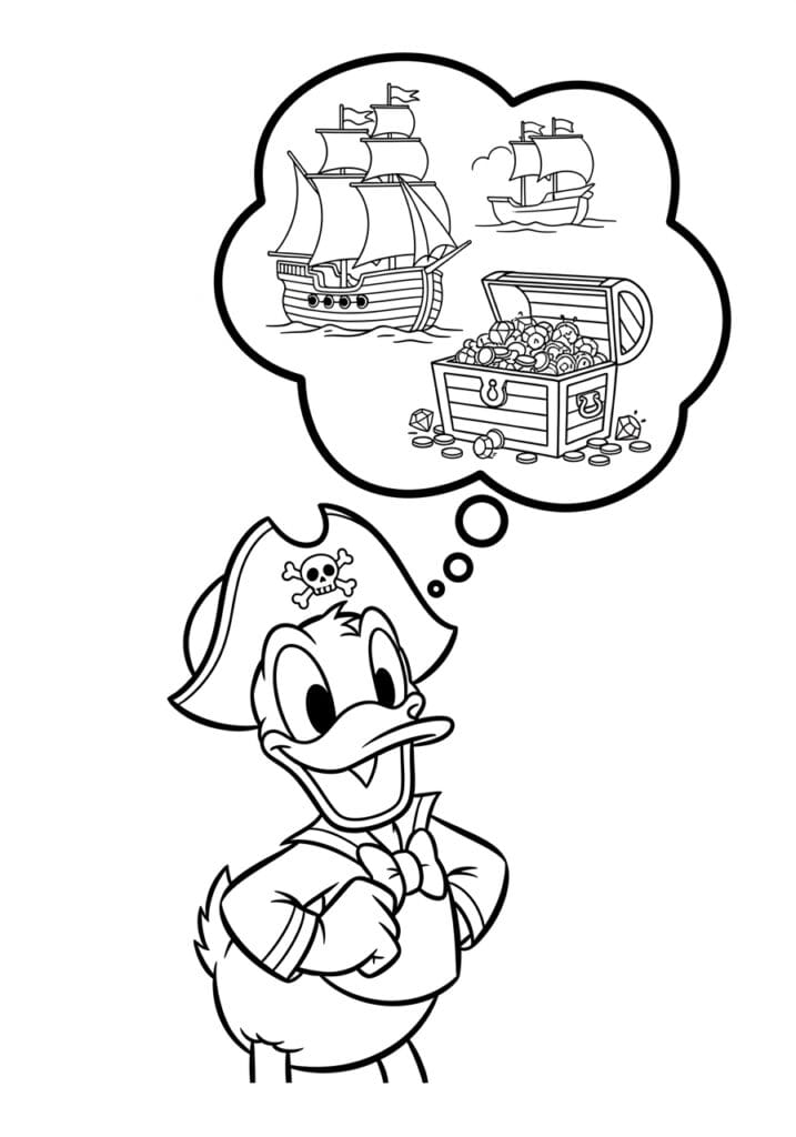 Donald Duck Pirate Dreaming of Treasure Coloring Page