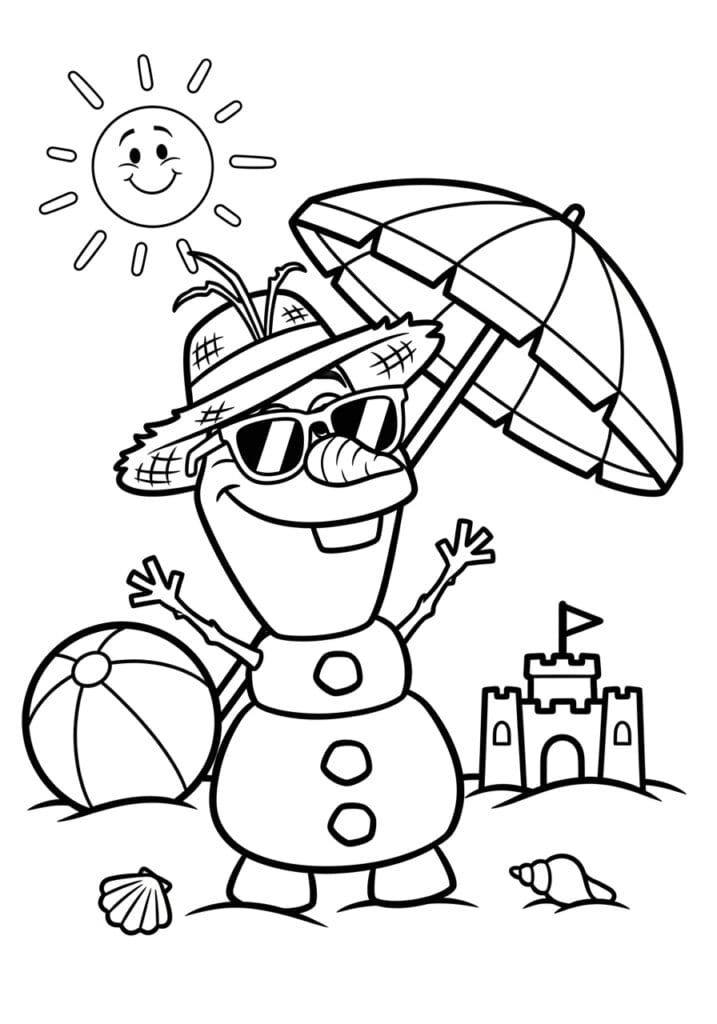 Olaf the Snowman Enjoying a Day at the Beach Coloring Page