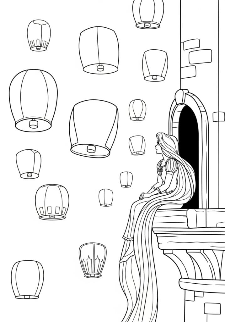 Rapunzel Watching the Lanterns Float From Her Tower Coloring Page