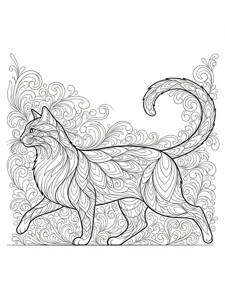 I absolutely adore how dynamic this design feels while still being incredibly meditative to color. The cat looks like it is striding through a magical thicket of patterned energy. This is the perfect page for when I want to truly lose myself in the process, maybe focusing on using gradients within the flowing lines of the cat’s body to give it a wonderful, almost iridescent look. If you enjoy rich visual texture and don’t shy away from a tight space, this will keep you happily coloring for hours. It feels both sophisticated and delightfully whimsical all at once.