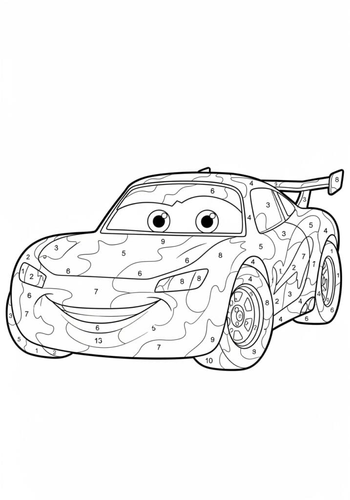 • Lightning McQueen Race Car Color By Number Page