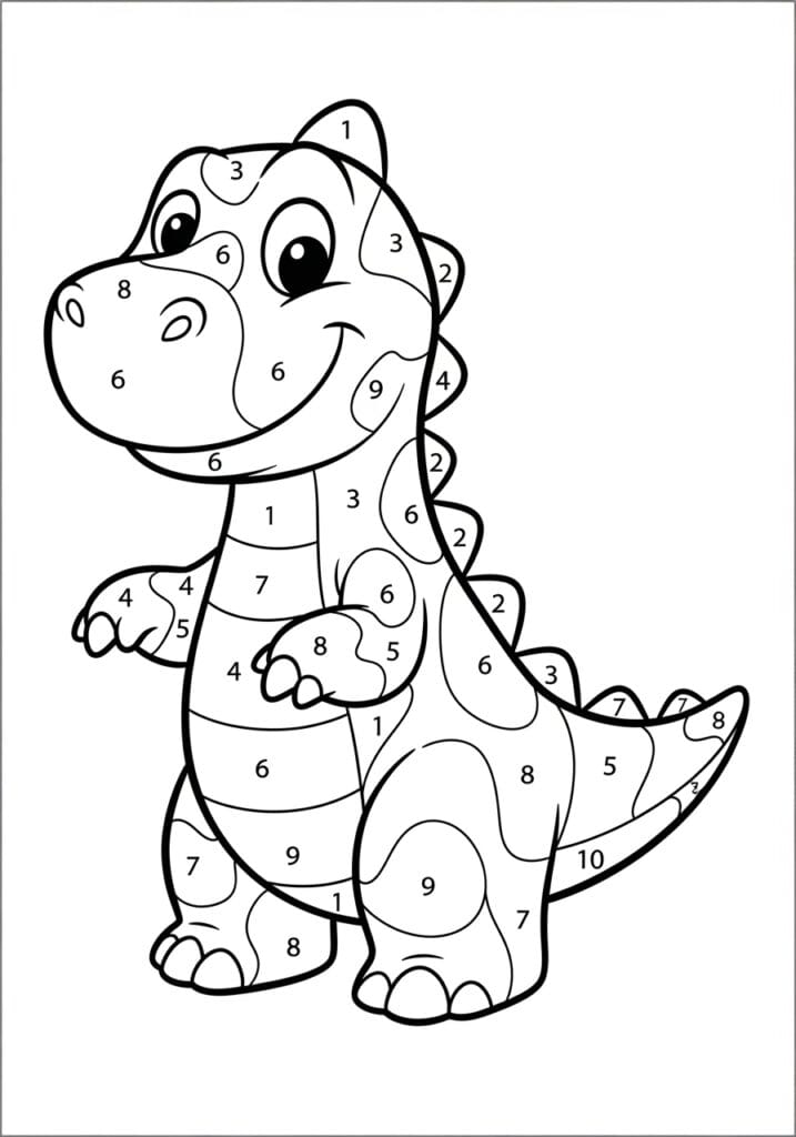 Friendly Baby Dinosaur Color By Number Page