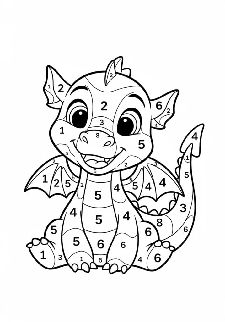 • Sitting Baby Dragon Color By Number Page