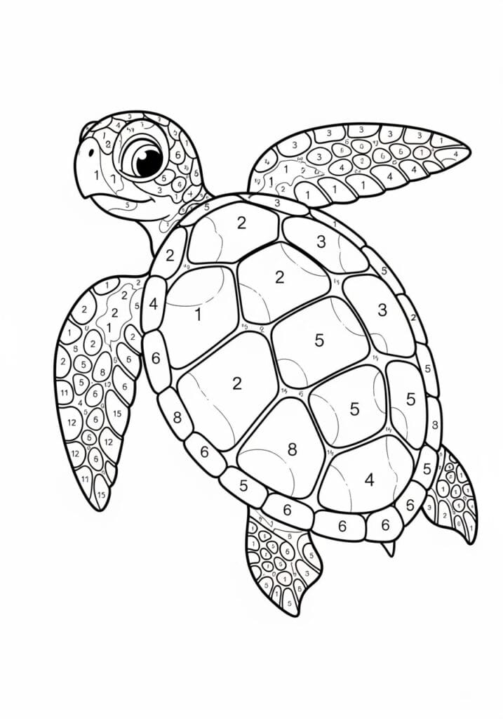 • Swimming Sea Turtle Color By Number Page