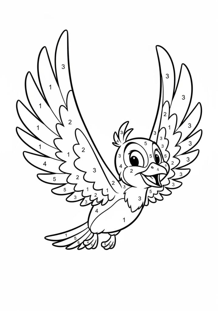 Cheerful Parrot In Flight Color By Number Page