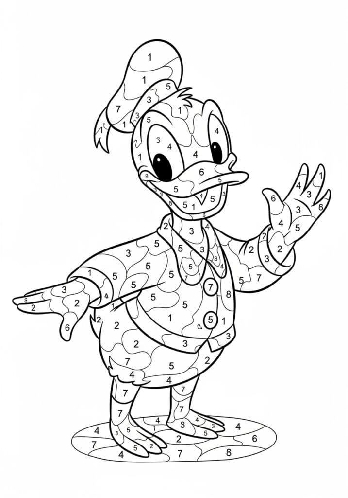Donald Duck Waving Color By Number Page