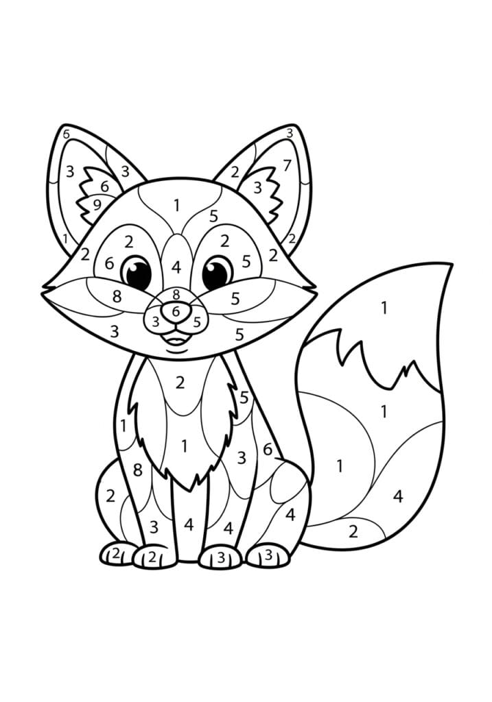 • Little Fox With Fluffy Tail Color By Number Page