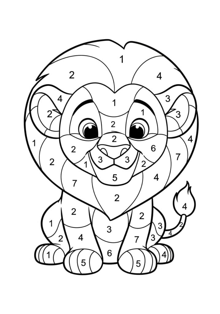• Cute Lion Cub Color By Number Page
