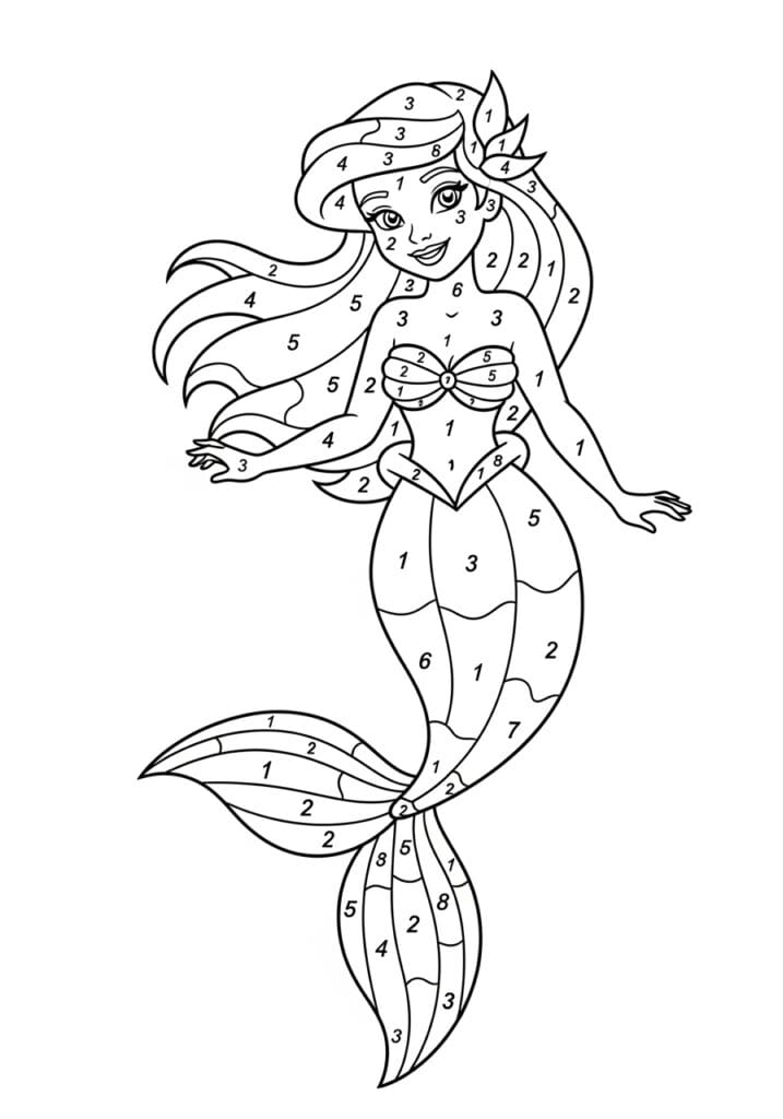 • Mermaid Princess Color By Number Page