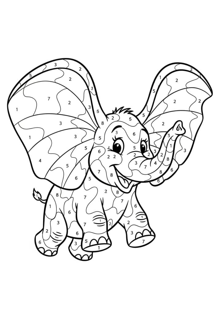 Baby Dumbo Big Ears Color By Number Page