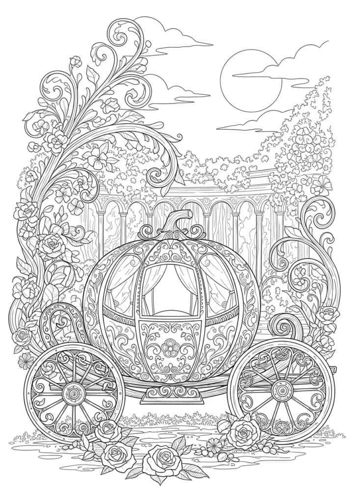Cinderella’s Enchanted Pumpkin Carriage Coloring Page