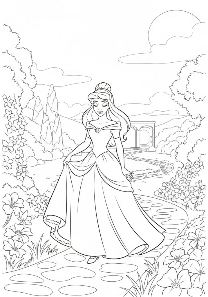 A Disney Princess Strolling Through a Blooming Garden in Full Swing
