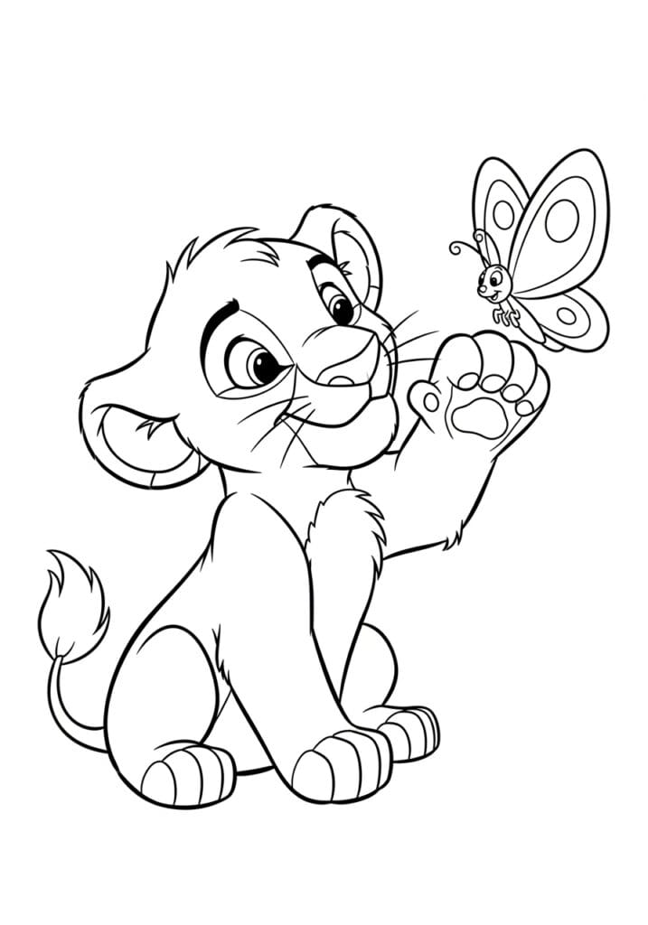 I genuinely adore coloring this page because it captures such an innocent, tender moment that just melts your heart. The large expressive eyes are perfect for adding depth with careful shading, and you can really bring Simba’s personality to life with your color choices. Those butterfly wings are my favorite part because you can go absolutely wild with patterns and colors, from realistic monarch orange to fantasy rainbow gradients. The fur texture gives you a wonderful opportunity to practice layering colors to create dimension, and those little paw pads are the cutest tiny details to add contrasting colors to. This is one of those pages that feels therapeutic to color because the subject matter is so pure and joyful, and I always feel a little happier after finishing it.
