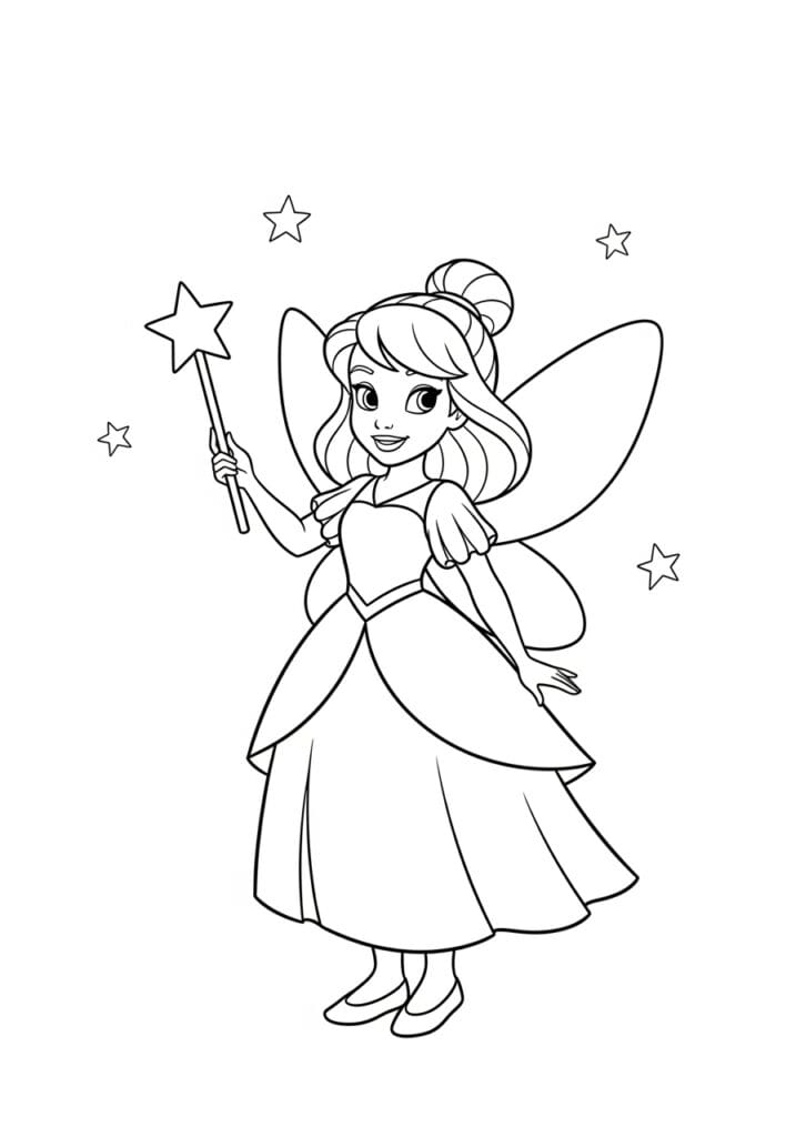 I think this page is absolutely enchanting to color because it combines elegance with whimsy in such a satisfying way. Those fairy wings are a dream to work with since you can make them translucent and ethereal with light colors, add gradients, or even go bold with vibrant hues. The flowing dress gives you plenty of room to experiment with shading and highlights to create dimension, and that magic wand is the perfect spot to add some sparkle with glitter pens or metallic markers. The scattered stars in the background are like little bonuses that you can color however you want to set the magical mood. This is one of those pages that makes me feel creative and inspired while I’m working on it, and I love how the fairy godmother’s joyful expression radiates positivity throughout the whole design.