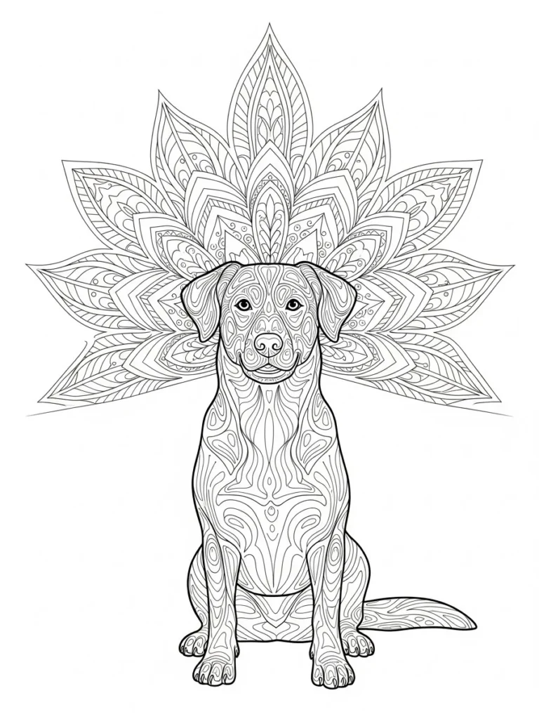 • Spiritual Labrador and Radiant Mandala Coloring Page