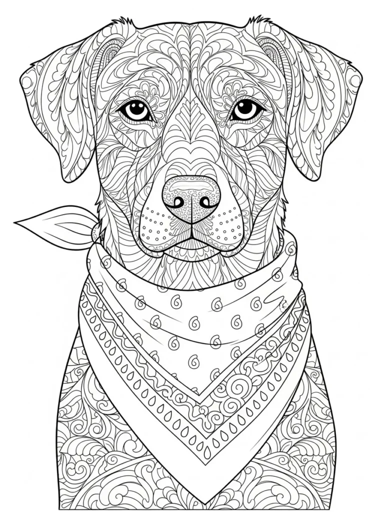 This page is a total joy for anyone who loves filling in detailed, decorative shapes. I think I’ll use deep reds and blacks for the bandana patterns to make that classic paisley pop, then contrast that with vibrant blues and golds within the dog’s patterned coat. Coloring this requires focus, which I love because it completely melts away my daily mental clutter. If you enjoy detailed work that lets you be super creative with color combinations on both the main subject and accessories, this cool canine is absolutely calling your name.