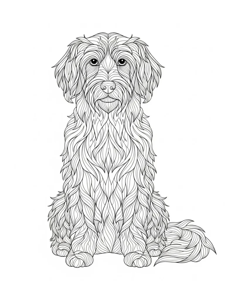 • Shaggy Doodle Dog with Flowing Coat Coloring Page