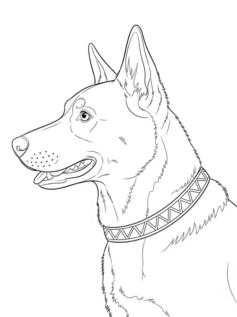 • Alert Profile Dog with Geometric Collar Coloring Page