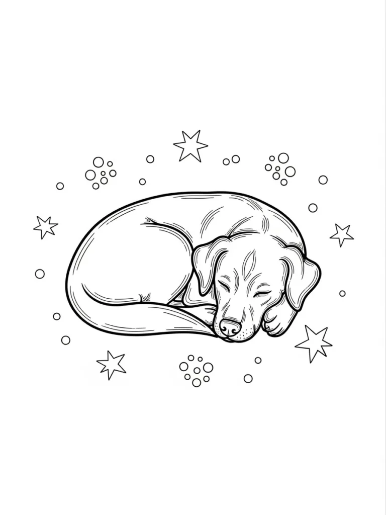 • Dreamy Sleeping Puppy with Stars Coloring Page