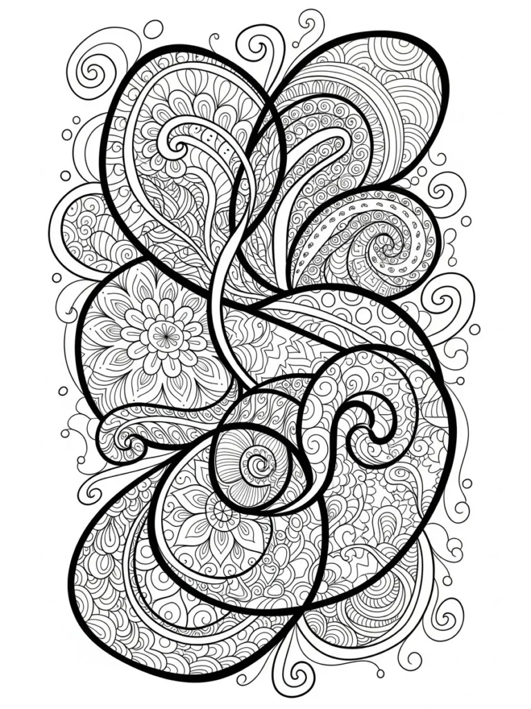 If you are into coloring that feels creative and a little freeing this page is such a good choice. I love how the big loops let me relax with broader strokes while the tiny patterns pull me into a calm focused zone. It feels like the perfect mix of loose and detailed which keeps me engaged without feeling overwhelmed. By the end I always feel relaxed and genuinely excited about how unique my color choices make it look.