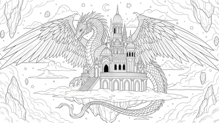 I love this page because it feels powerful and moody in the best way. Coloring the clouds is so relaxing and I enjoy choosing soft tones that balance the intensity of the dragon. Some people love calm sleepy designs but this one lets me play with contrast and emotion while still unwinding. It feels like a perfect choice for nights when I want something fierce magical and totally absorbing.