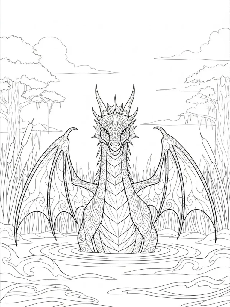 I love this page because it feels bold and energetic without being chaotic. Coloring the spiral tail is oddly satisfying and helps me slow down and stay focused one section at a time. Some people love calm scenes but this one gives me that fierce fantasy mood while still feeling relaxing to color. It is perfect for days when I want something dramatic that still lets my brain fully unwind.