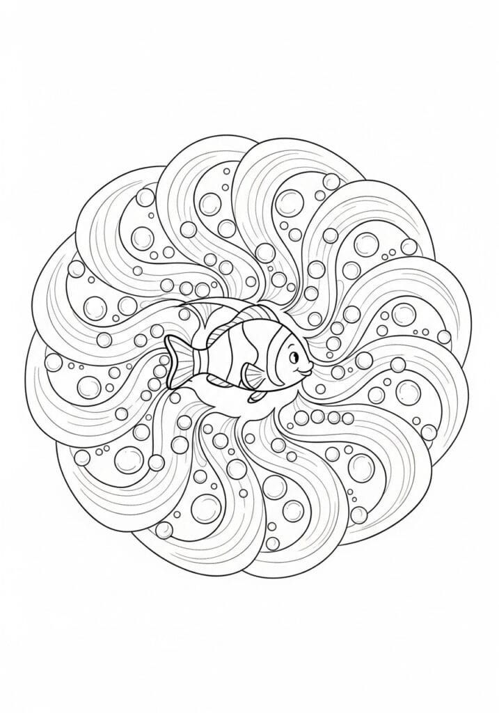 • A Clownfish Mandala Swimming Through Swirling Bubbles and Waves