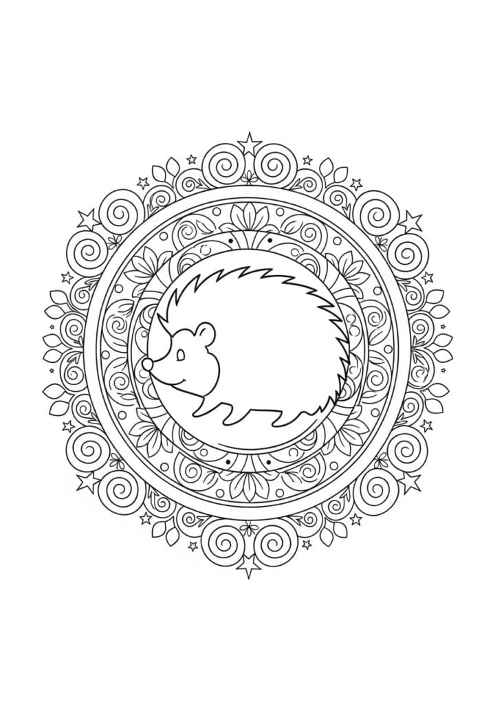 • A Little Hedgehog Mandala With Spiral Borders and Starry Details