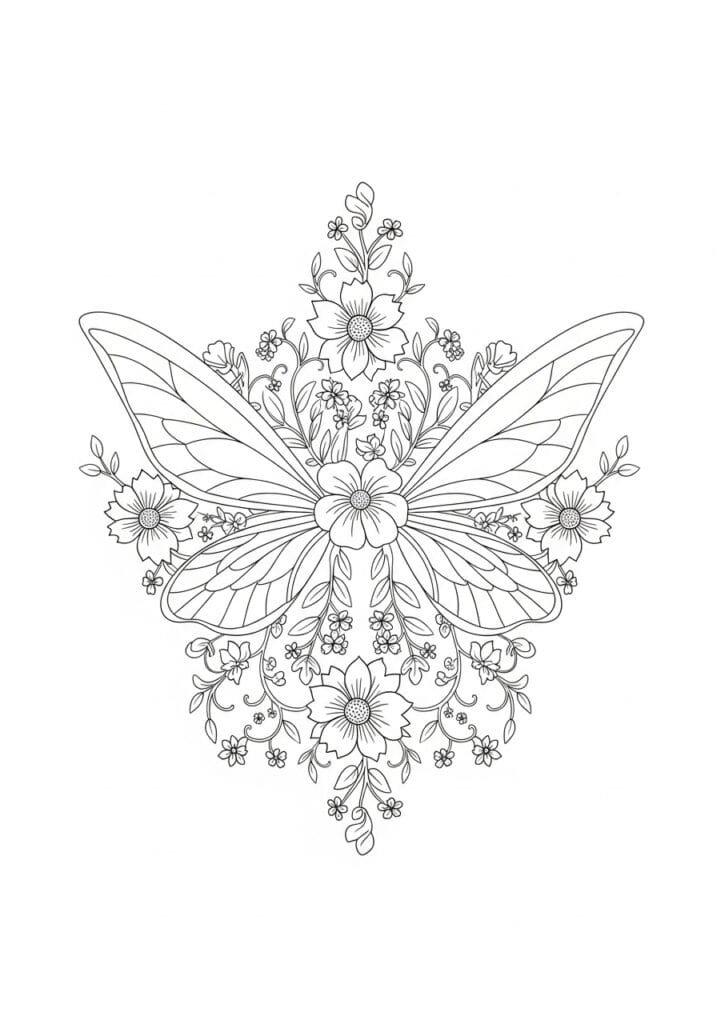 This is honestly one of those pages that feels less like a coloring sheet and more like a piece of art you get to finish yourself. I love how the wings give you this gorgeous opportunity to play with sheer, iridescent colors, imagine pale lavender and soft mint layered together to mimic that real fairy wing shimmer. Then the flowers give you a whole separate color story to tell alongside them. It is a page that rewards you for taking your time with it, and the end result is going to look seriously stunning framed on a wall.