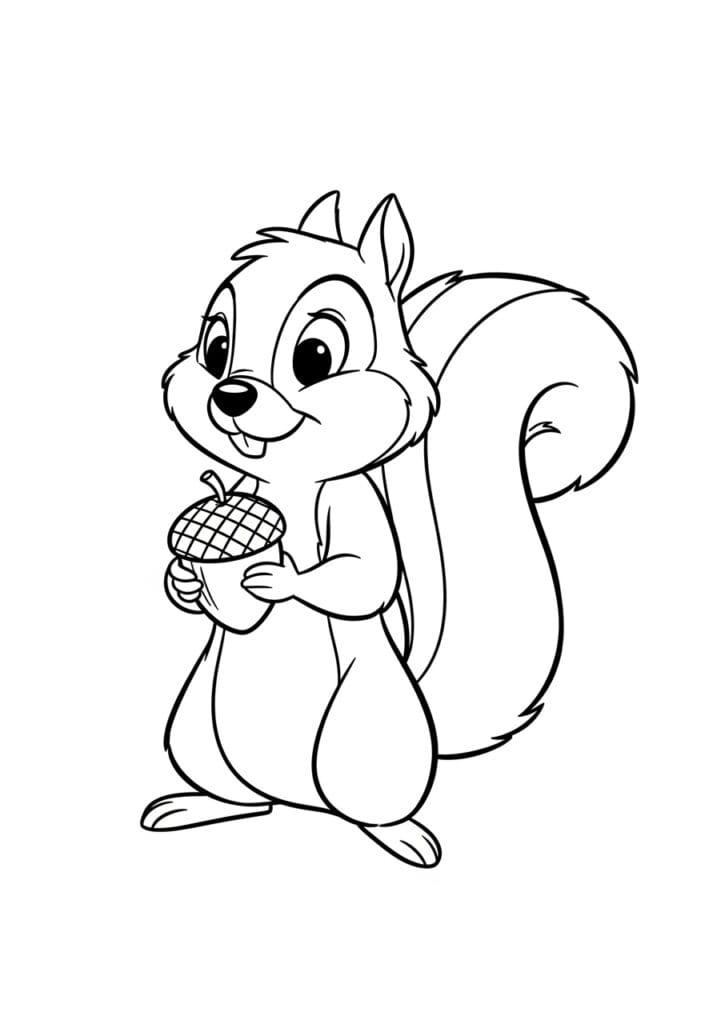 This page makes me so happy every single time because those chubby cheeks are basically coloring page perfection. The face is large enough that you can actually have fun with details like giving the inner ears a soft pink tone or adding a little warmth to those cheeks. The body is wonderfully simple with just enough fur texture lines to make it interesting without being overwhelming at all. It is one of those pages that looks incredibly cute finished, and kids who know Chip and Dale will be absolutely delighted from the moment they recognize him.